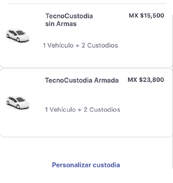 Cotización y contrata tu custodia en segundos, ya sea desde el celular o nuestra app. Ofrecemos diferentes niveles de servicio en función de las necesidades de tu empresa.