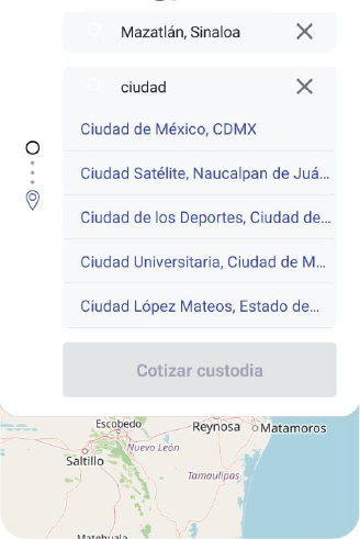 Cargas tu punto de origen y destino para que sepamos que ruta vamos a proteger